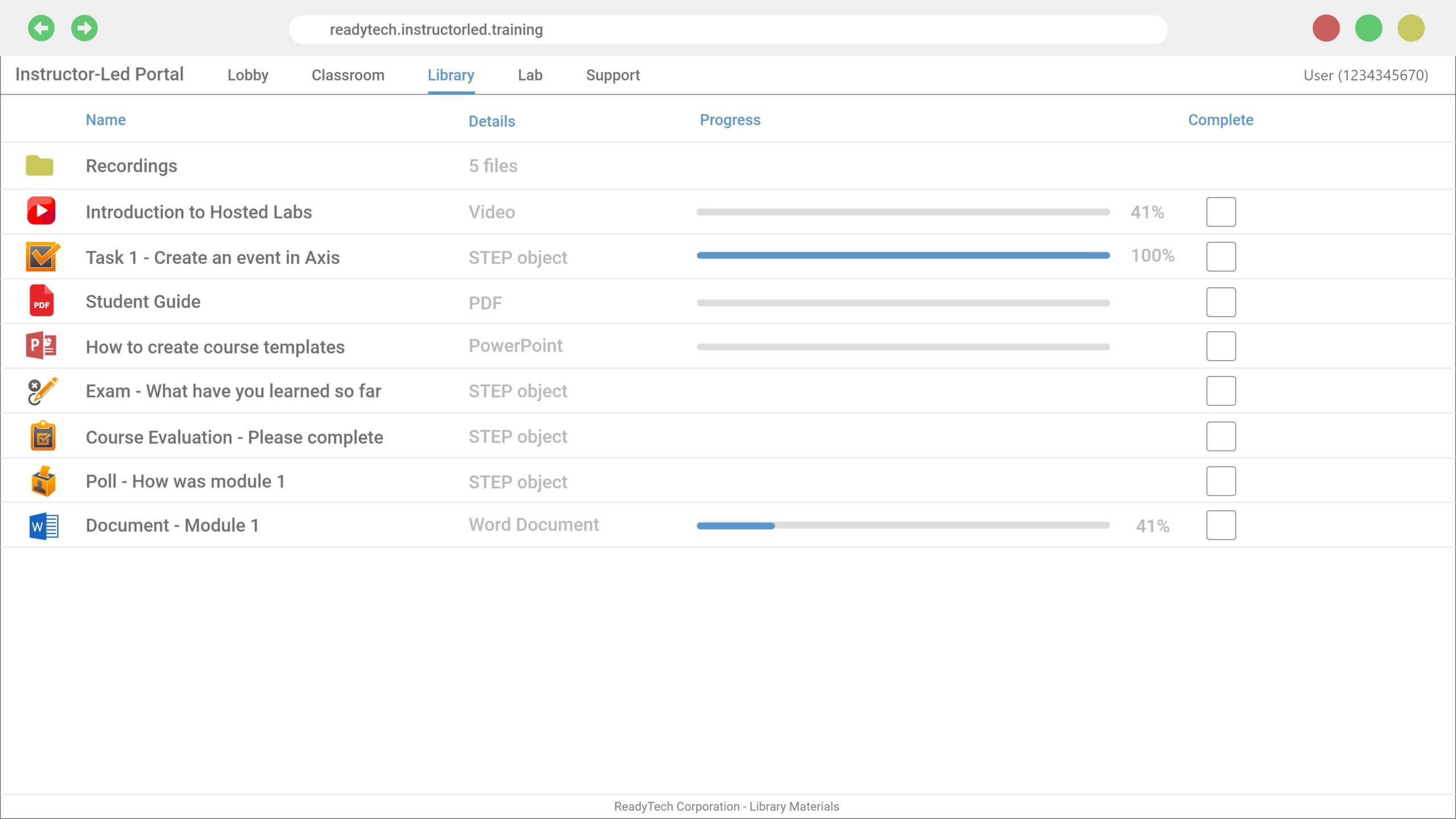 ReadyTech’s self-paced training solution comes with a built-in Support Portal that allows you to support your self-paced students. It includes an online and offline chat feature for students to ask questions or request lab assistance. Instructors can take over the students’ labs to help when a student is stuck during their lab exercises and get them back on track. Besides these essential features, it supports file transfer, full system controls such as soft and hard reboots, and system resets. Your support hours can be published to include your support SLAs so students know when to expect your help.