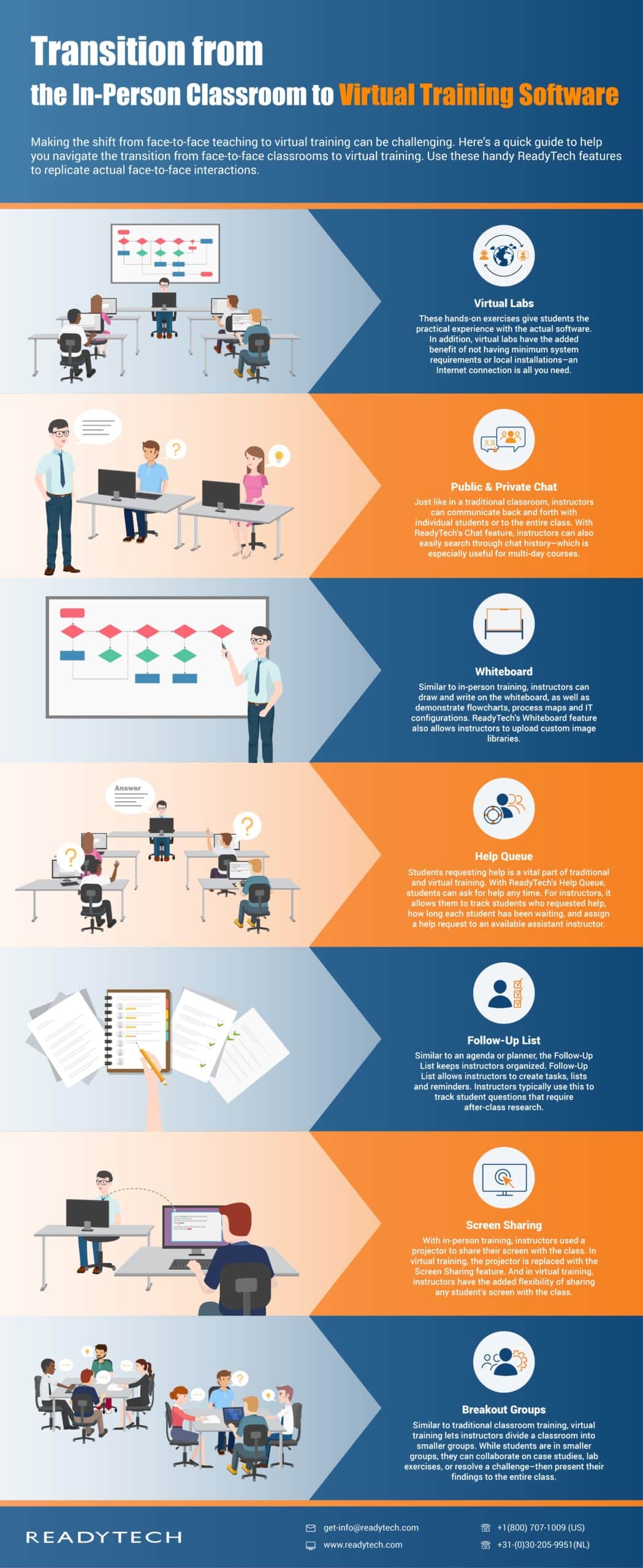 Switching from in-person to virtual training can be a scary transition. Download this guide to learn which ReadyTech features were designed to replicate actual, in-person classroom interactions.
